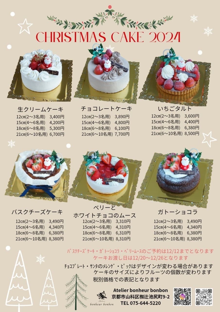 ⚠️ガトーショコラ、ベリーのムース、バスクチーズケーキのご予約は12/12までとなります。